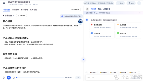在一些对信息捕捉要求极高的应急响应复盘或行业论坛中,智能语音技术的演进也提供了极大的便利。面对十几个人的快速发言,现代工具利用降噪算法和人声增强技术,在嘈杂的背景音中也能提取有效内容。更重要的是,目前的AI趋势正从单一的“语音转文字”向“音频内容深度分析”演进。这就意味着,在得到一份高质量的逐字稿之后,算法能够顺畅地接管后续的提炼工作,自动生成带有关键决策点、风险评估要点的结构化摘要。