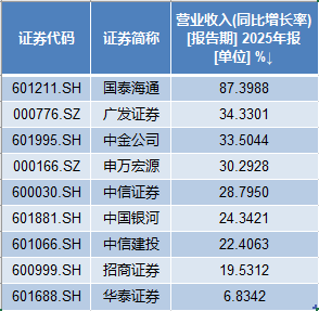 截至4月1日,除国信证券(002736)外,2024年营收排名前十位的上市券商,2025年年报已悉数披露。排名变化上,除中信证券(600030)、国泰海通(601211)、华泰证券(601688)依旧分列前三外,其余6家券商“三升三降”。