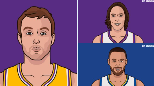 美媒StatMuse分享数据:单赛季命中率达到 50%/45%/90%,且场均三分出手次数达到 3 次以上的球员;