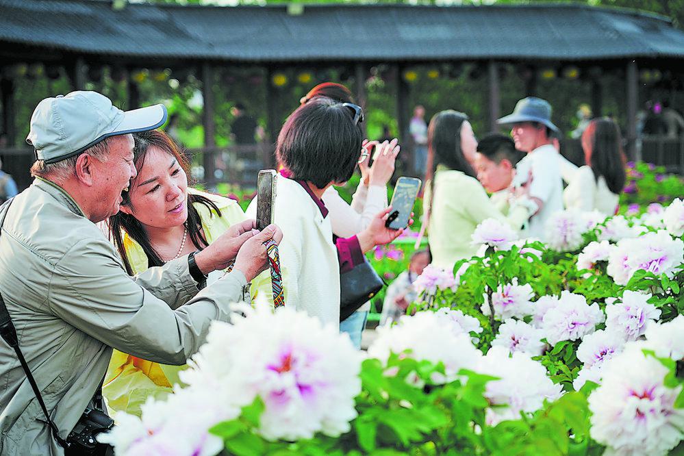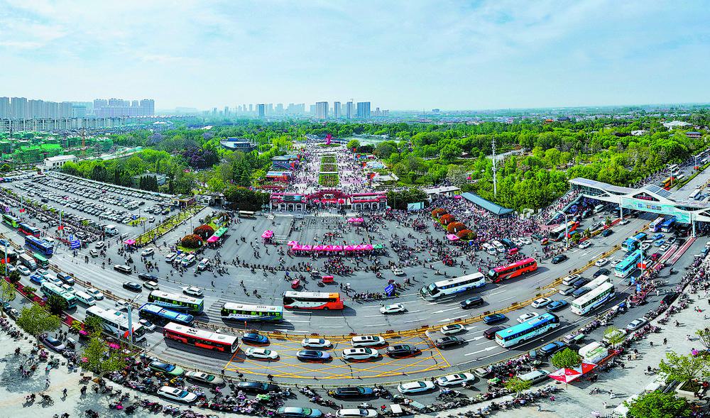 4月12日,曹州牡丹园单日接待游客突破12万人次