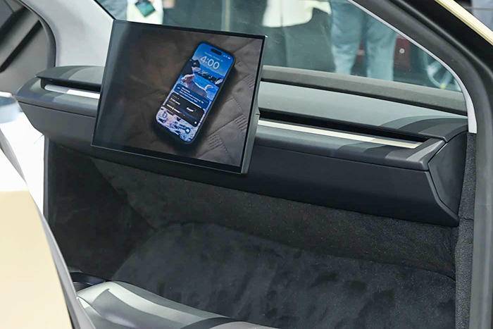 内饰方面,诚如现场图片所见,车内仪表台除了那块硕大的中置中控屏之外,再无其他可操作的部件,没有仪表盘、没有方向盘、没有换挡杆、没有空调旋钮、没有电门/刹车脚踏板。车内一如外观设计一样十分简洁,有特斯拉工作人员曾在第八届进博会上透露,新车可使用机械臂对车内进行自动清洁。